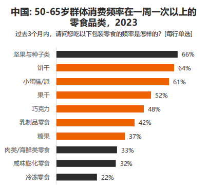 糖果巧克力成為老年消費(fèi)者有興趣購買的產(chǎn)品種類,位列第二(39%)。