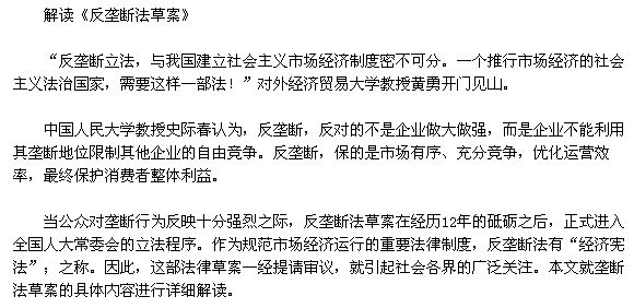 反壟斷法審議實錄:"我贊同制定反壟斷法"