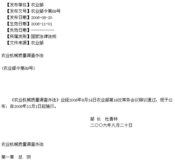 農(nóng)業(yè)機械質(zhì)量調(diào)查辦法2006-08-20
