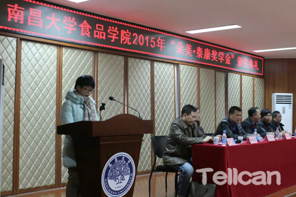 2015年12月29日上午,第二屆“朵美·泰康獎(jiǎng)學(xué)金”頒獎(jiǎng)典禮在南昌大學(xué)食品學(xué)院舉行。南昌朵美生物科技有限公司總經(jīng)理丁泉水、南昌泰康食品科技有限公司總經(jīng)理馬小明、南昌大學(xué)學(xué)工委辦主任游偉平、食品學(xué)院院長(zhǎng)劉成梅、黨委書記譚杰、黨委副書記劉志鳳、副院長(zhǎng)張國文、副院長(zhǎng)熊濤以及全體輔導(dǎo)員出席此次典禮。典禮由劉志鳳主持。
